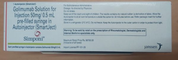 Home » All Products » Simponi 50mg PFS Simponi 50mg PFS See also different: Olumiant 4mg Tablets Infimab 100mg Vial Entavir 0.5mg Tablets Cronivir 0.5mg Tablets << return to catalog